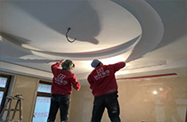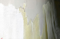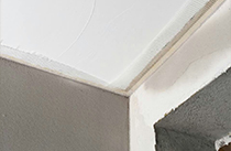 | 玻纖網上天花 墻角是裂縫多發地段,有玻纖網的連接, 將易開裂處錯開,后期開裂的隱患。 |