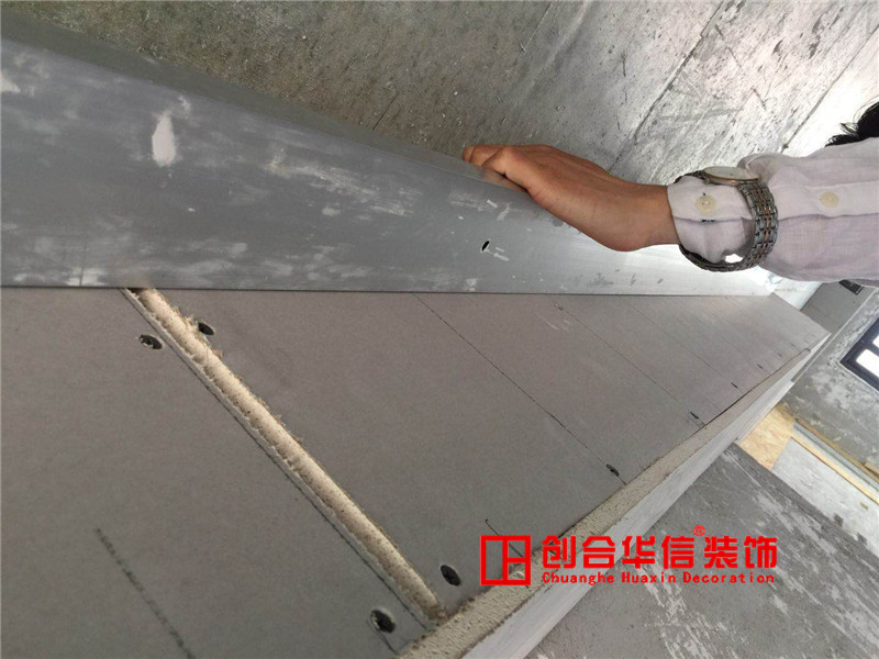 1.3石膏板裁切面需光滑,不允許有缺損,毛刺等;石膏板交接處采用v型槽的剔槽工藝,然后再補嵌縫石膏,貼防裂壁布和牛皮紙后刮膩,為了讓接縫位置更加牢靠。